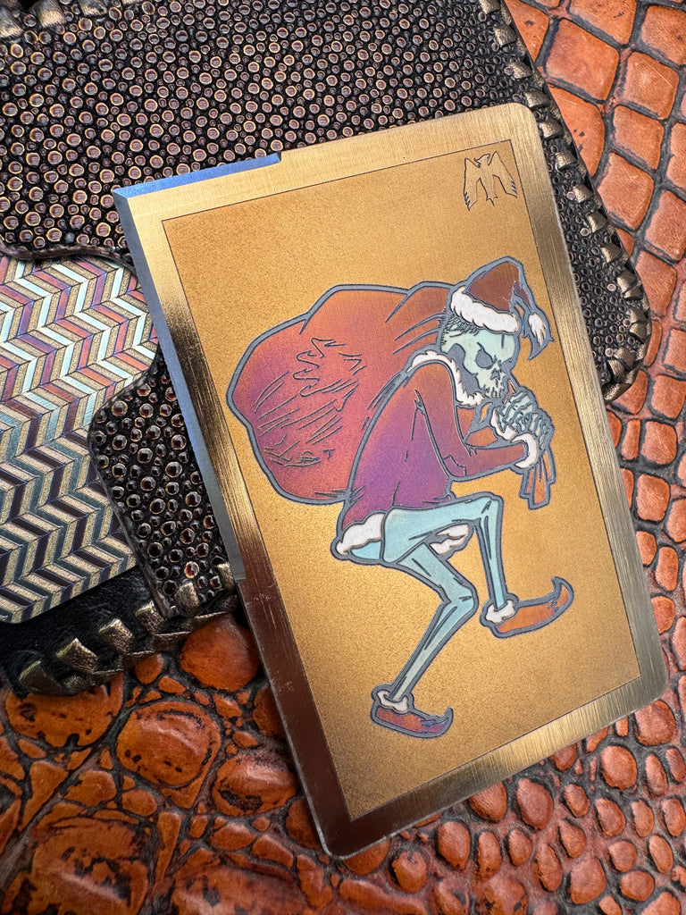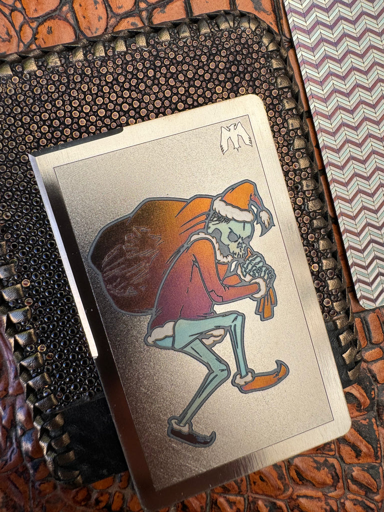 The ‘El Grincho’ SneakReaper Cutting Card™ is a titanium credit card knife, with a razor sharp carbidized edge. Unlike some other credit card tools it is built for a singular purpose - to give you a razor sharp edge that you can always have with you. Constructed from .035" thick 6Al-4V titanium with a deeply impregnated carbide edge, at a Rockwell Hardness of 72, provides a long lasting, razor sharp cutting edge. The perfect back up blade for any occasion.